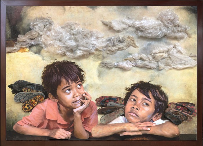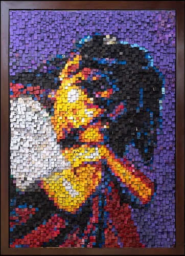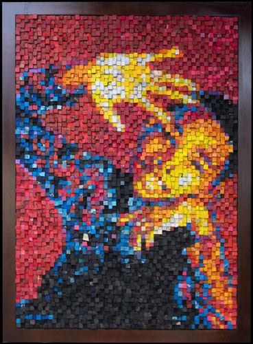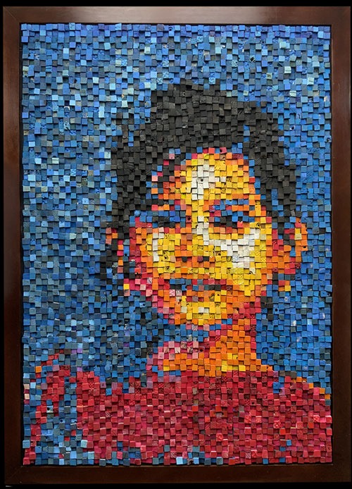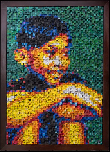 This artwork is made of 5100 cubes of discarded flip-flops picked by hand on the beaches of Bali